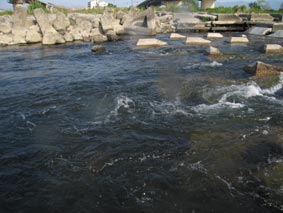 ・戸板島橋周辺 4月30日頃には旧物部川橋付近や岡西岩場等で見えていた大量遡上中の天然アユ群。